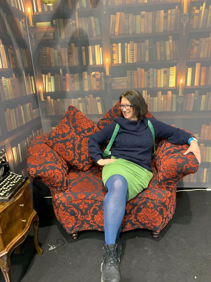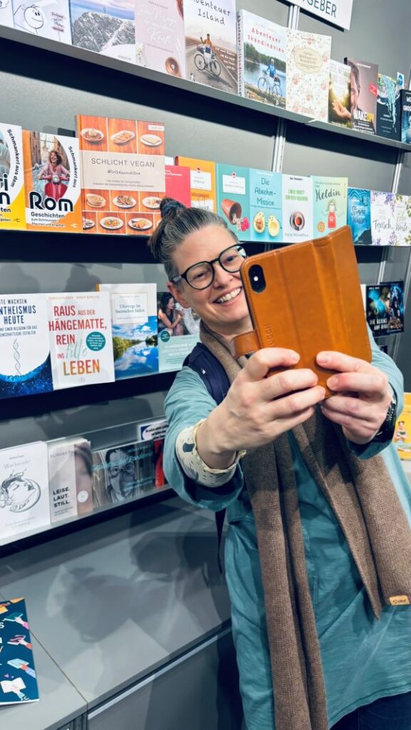Ich fühle mich so sehr in meinem Element, dass ich gleich zwei Tage dort verbringe. Mit Verlegern ins Gespräch kommen, Lesungen besuchen, Autoren im Interview zuhören, Fachgespräche führen, Kolleginnen treffen, Erfahrungen mit anderen Selfpublishern austauschen … Als ich ein paar Bilder auf LinkedIn veröffentliche, schreibt jemand, dass ich so sehr strahle, so richtig viel Glück in den Augen habe. Klar, schreibe ich zurück. So ist das, wenn eine Autorin in ihrem natürlichen Habitat ist. Nur Bücher rundherum.
