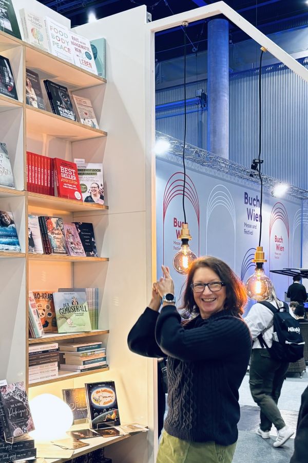 Was für ein Fest! Unser Buch ist gleich an zwei Ständen ausgestellt. Meine Co-Autorin Birgit ist zum ersten Mal auf der Buch Wien, und wir haben so viel Spaß beim Streunen durch die Hallen. Wir werden sogar gebeten, unser Buch zu signieren <3