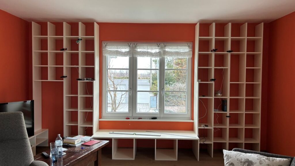 Und so gab es im Februar eine Großbaustelle in unserem Wohnzimmer. Was sagt ihr dazu? Unterm großen Fenster haben wir übrigens ein Window-Seat gebaut, ein laaange gehegter Wunsch von mir!
