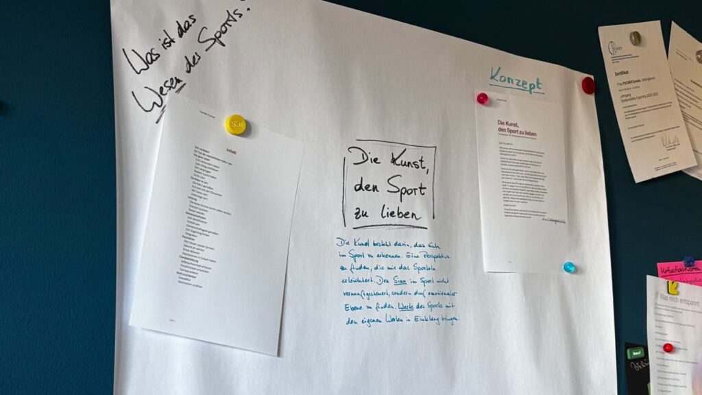 Mitte dieses Jahres starte ich. Ich hole mir einerseits Hilfe und groove mich ein ins Thema. Lese Fachbücher, führe Gespräche. Ich entdecke die Sportphilosophie. Ich wusste gar nicht, dass es sowas überhaupt gibt! Seitdem habe ich monatlich ein Meeting mit Henrike Dörr, sie ist schon seit vielen Jahren meine Kollegin im weltbesten Netzwerk Texttreff und war auch Lektorin unseres Buchs „Raus aus der Hängematte“. Sie arbeitet auch gerade an einem Buch, und so halten wir uns gegenseitig motiviert.